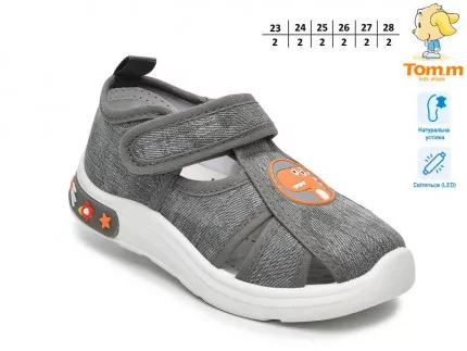 А підтверджена різноманітними численними сертифікатами висока якість не залишить сумнівів щодо правильності вашого вибору. Колекції марки взуття «Tom.m» регулярно оновлюються, кожен новий сезон компанія намагається запропонувати своїм маленьким клієнтам лише вибрані, найкращі модні та сучасні моделі. Дизайнери бренду намагаються, щоб на полицях магазинів дитячого взуття завжди знаходилися лише свіжі моделі, що відповідають останнім модним тенденціям. Щоб ваше маля виглядало завжди тільки стильно, модно, сучасно. При цьому висока якість виготовлення взуття для дітей від Tom.m дасть вам гарантії, що ваш малюк носитиме кожну придбану пару мінімум один сезон, і вона буде виглядати як нова, незважаючи на інтенсивність використання. Адже відомо, що маленькі пустуни люблять проводити активний спосіб життя, вони постійно бігають, граються і не хочуть сидіти смирно. Для того, щоб у дитячих іграх їм нічого не заважало, потрібне надійне дитяче взуття, яке захистить ніжки вашого малюка від холоду та вогкості навіть у найсуворішу зиму або дощову осінь, і дозволить їм дихати в спекотну літню погоду. Саме таке дитяче взуття пропонує торгова марка Tom.m. Завжди раді повідомити Вам про нові надходження дитячого взуття торгової марки том м, а також про знижки та акції наприкінці кожного сезону.